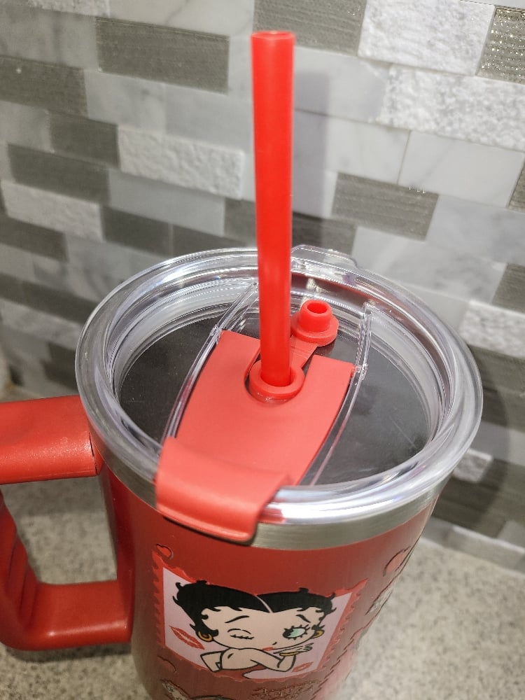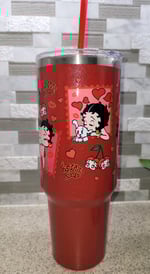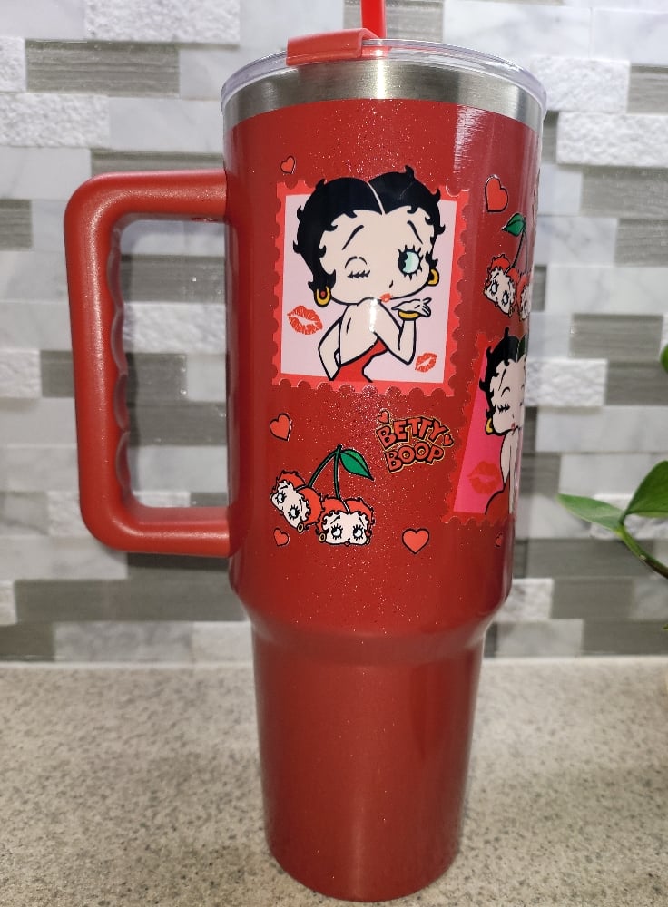 Beautiful shimmer 40oz Ashland Tumbler featuring Betty Boop theme. Made from durable stainless steel with double-wall insulation keeping drinks cold and hot, a spill-resistant lid, and built-in handle, it’s perfect for on-the-go hydration with a touch of iconic flair.