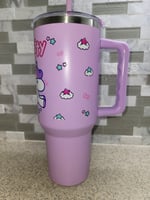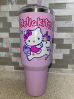 Beautiful 40oz Ashland Tumbler featuring Hello Kitty and Unicorn theme. Made from durable stainless steel with double-wall insulation keeping drinks cold and hot, a spill-resistant lid, and built-in handle, it’s perfect for on-the-go hydration with a touch of iconic flair.