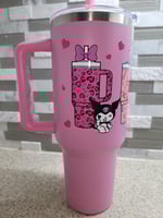 Beautiful 40oz Ashland Tumbler featuring Hello Kitty, Kuromi, and My Melody theme. Made from durable stainless steel with double-wall insulation keeping drinks cold and hot, a spill-resistant lid, and built-in handle, it’s perfect for on-the-go hydration with a touch of iconic flair.