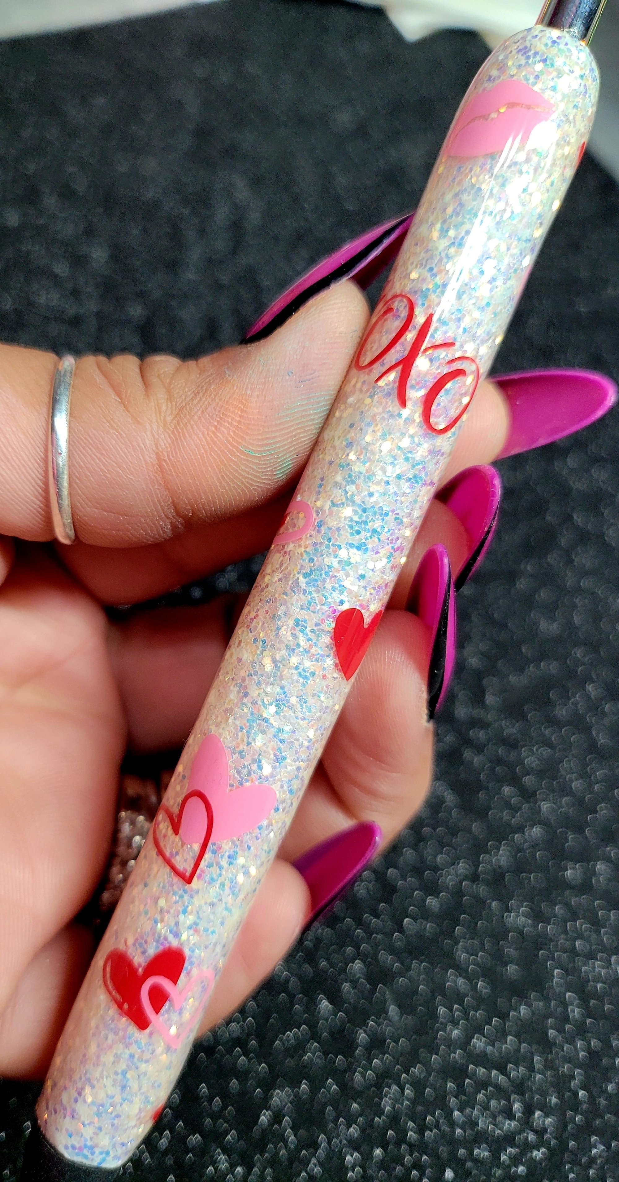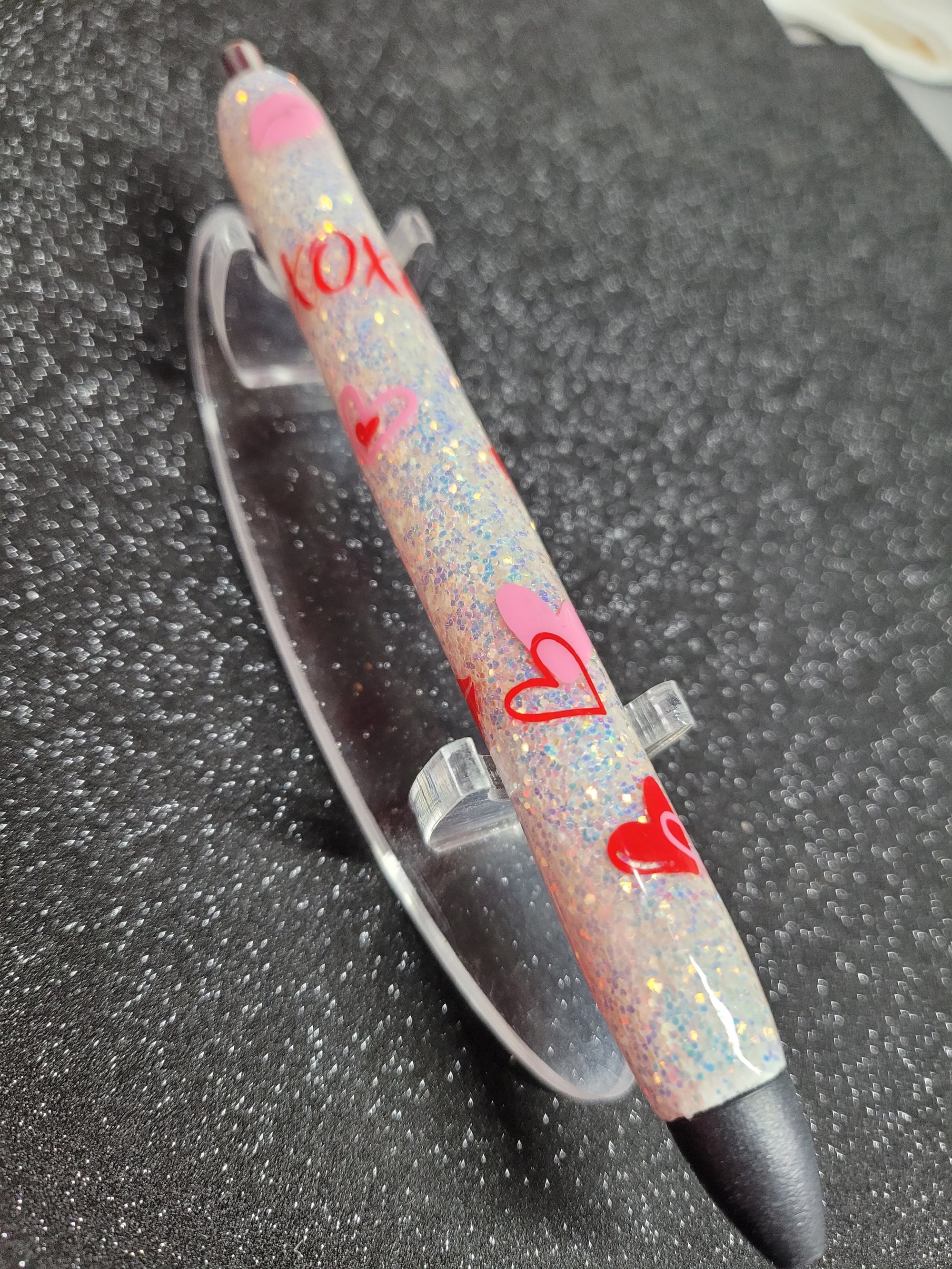 Beautiful glitter handmade Inkjoy gel pen crafted with epoxy resin. Features a unique, custom design and vibrant colors. The epoxy resin creates a glossy, smooth finish that not only enhances the pen's aesthetic appeal but also adds a protective layer against wear and tear.♡