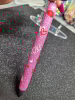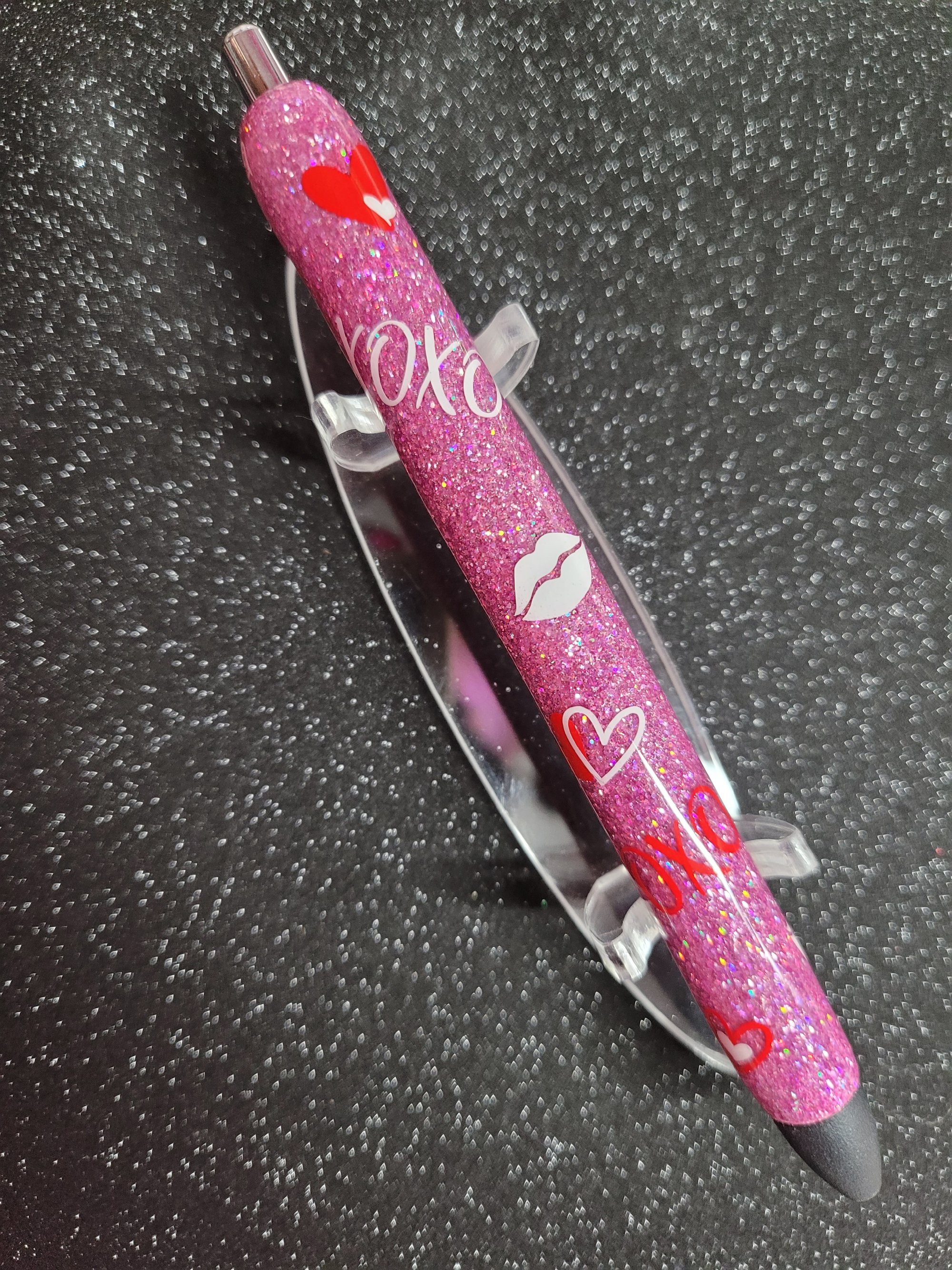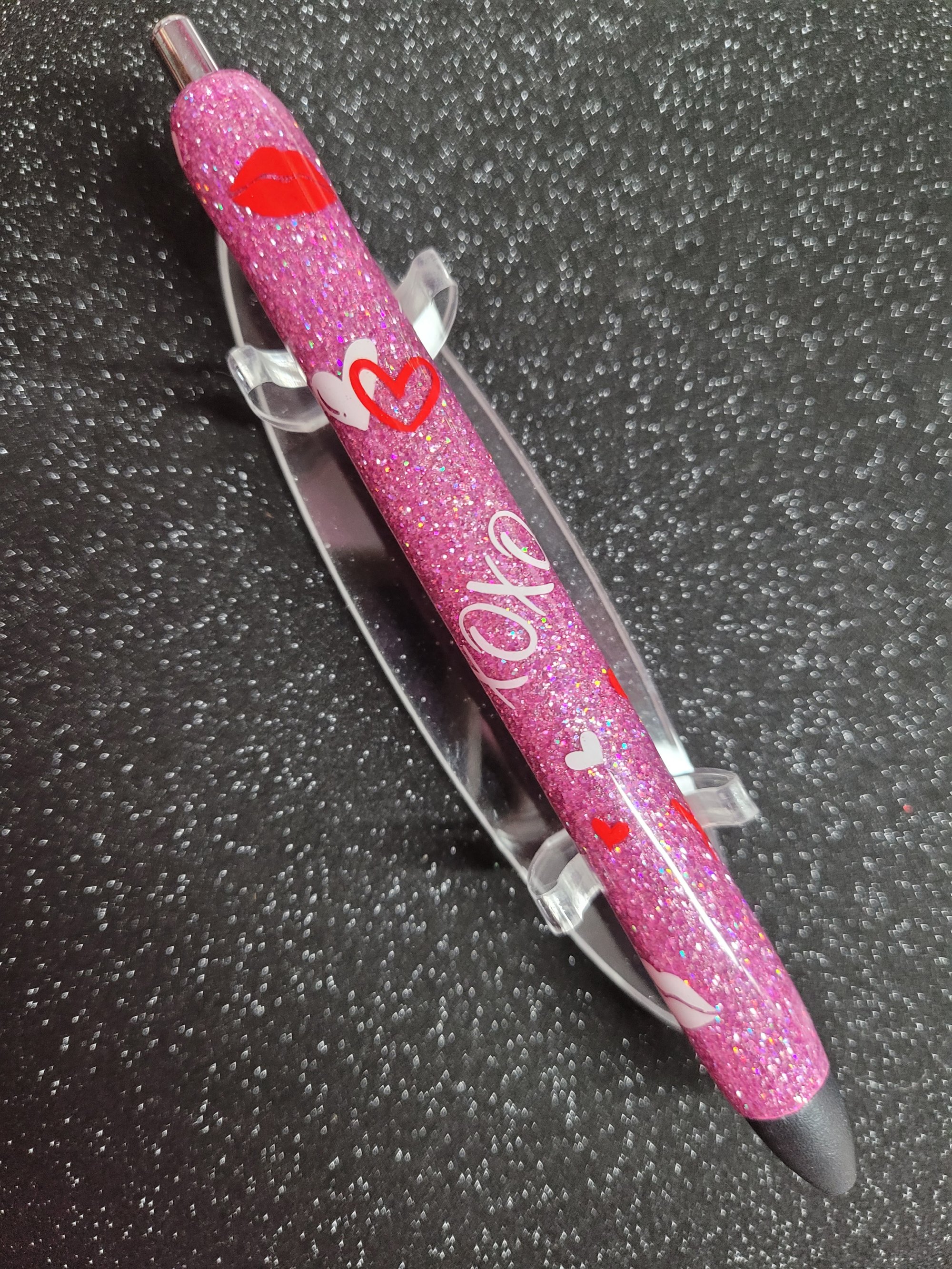 Beautiful XOXO glitter handmade Inkjoy gel pen crafted with epoxy resin. Features a unique, custom design and vibrant colors. The epoxy resin creates a glossy, smooth finish that not only enhances the pen's aesthetic appeal but also adds a protective layer against wear and tear.♡