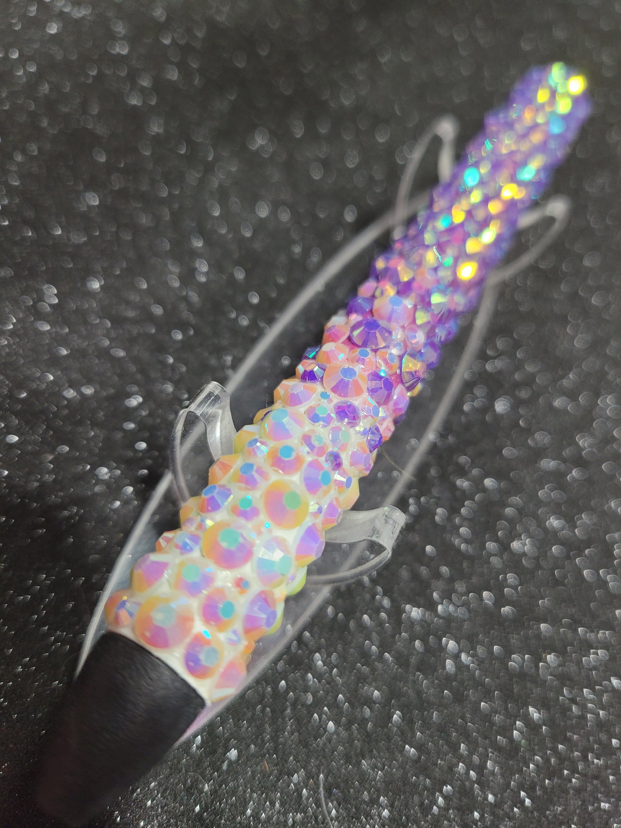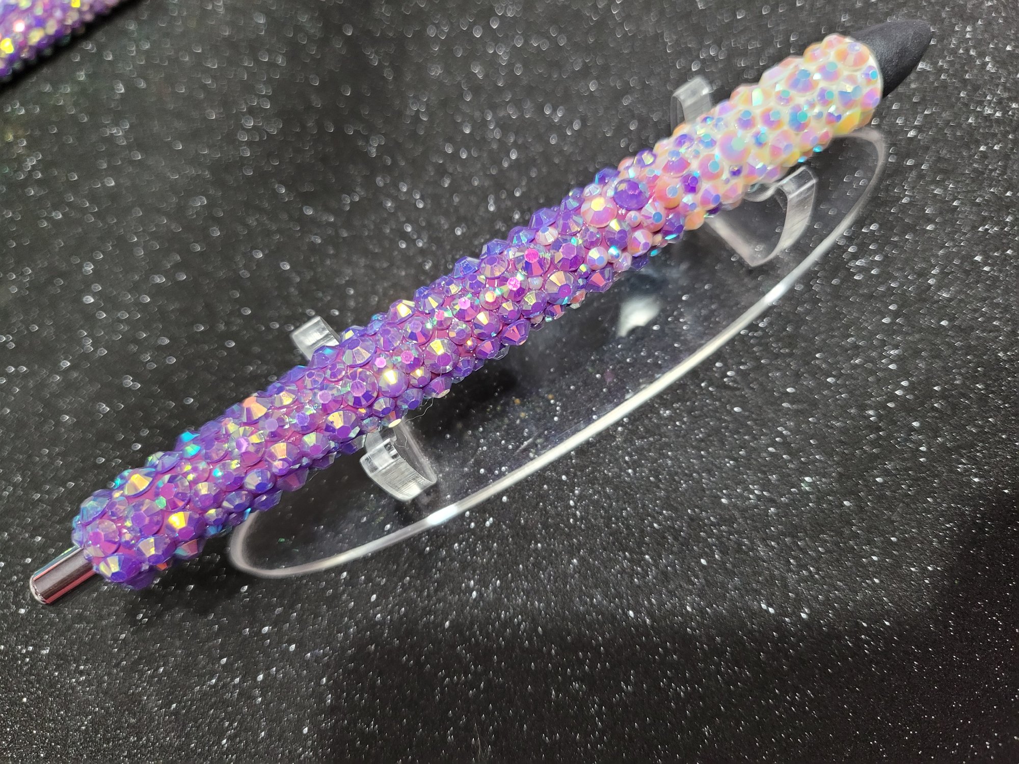 Beautiful resin rhinestone pen adorned with individually placed rhinestones, offering a touch of glamour to every writing experience. This pen includes purple AB and white AB rhinestones.♡
