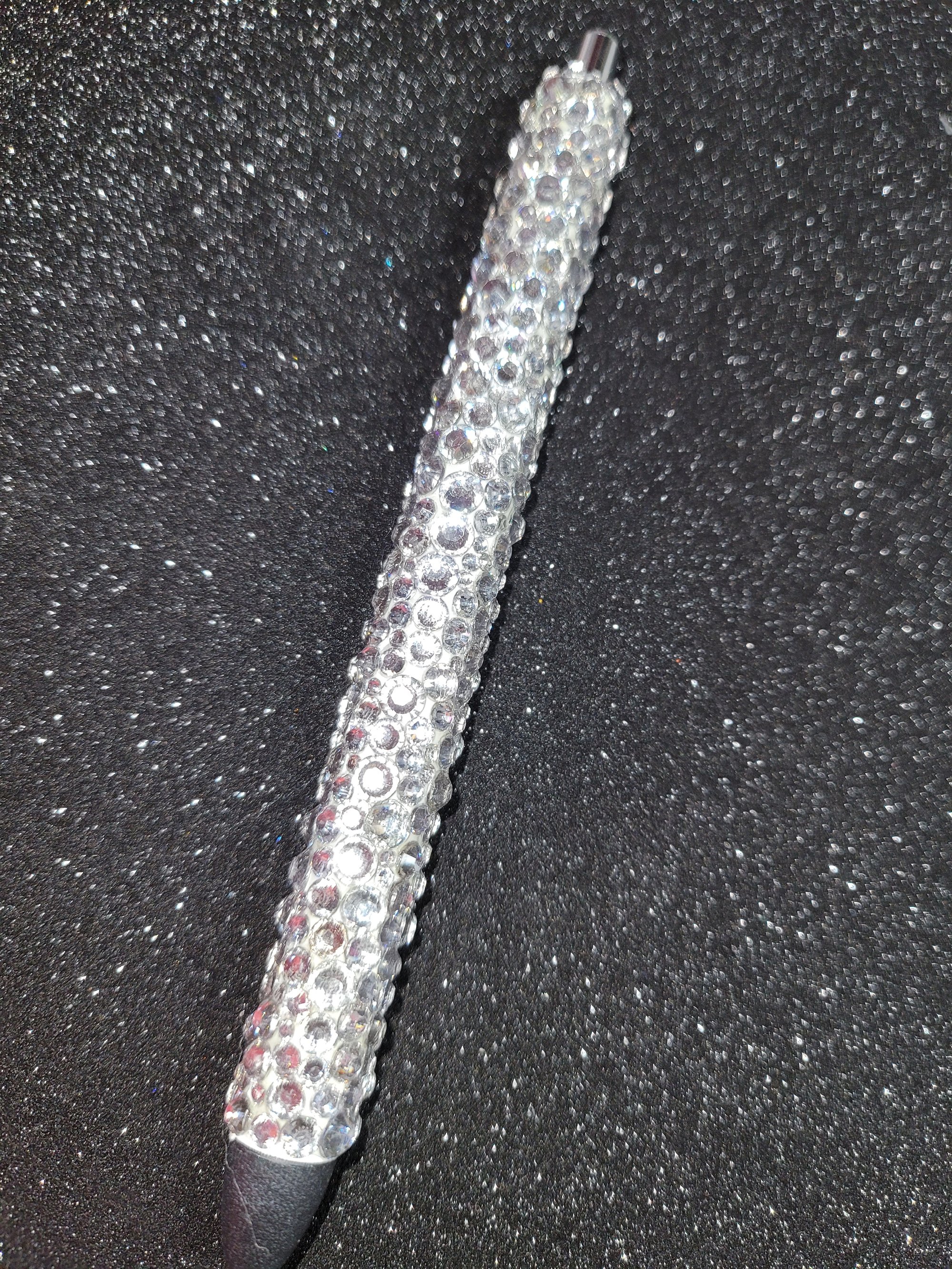 Beautiful resin rhinestone pen adorned with individually placed rhinestones, offering a touch of glamour to every writing experience. This pen is crafted to combine functionality with style, making it a perfect accessory for any professional setting or special occasion.♡